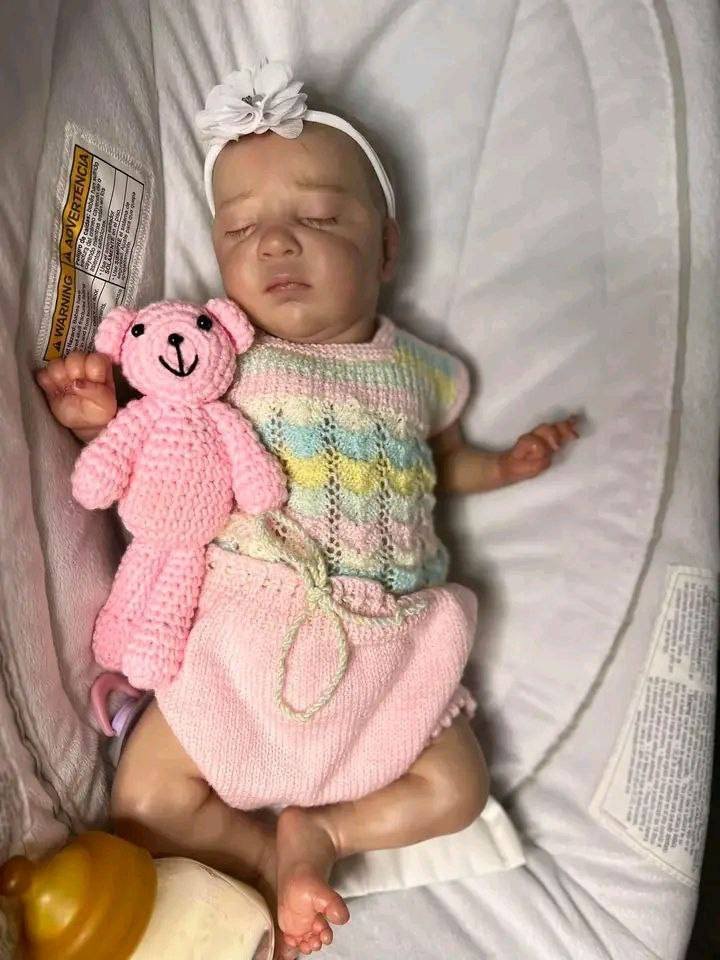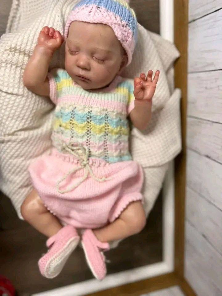 This preemie-sized, 17-inch baby girl features full silicone limbs and a full silicone body. She has been meticulously painted with Genesis Heat Set Paints, including delicate blushing. Her hair is micro-rooted premium mohair in a light blonde shade. Head Material: Silicone Limb Material: Silicone