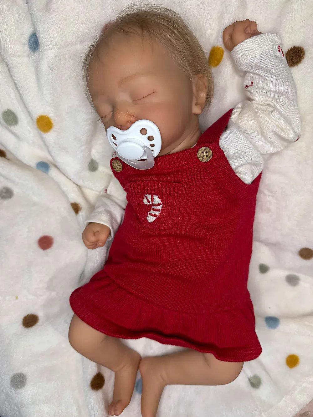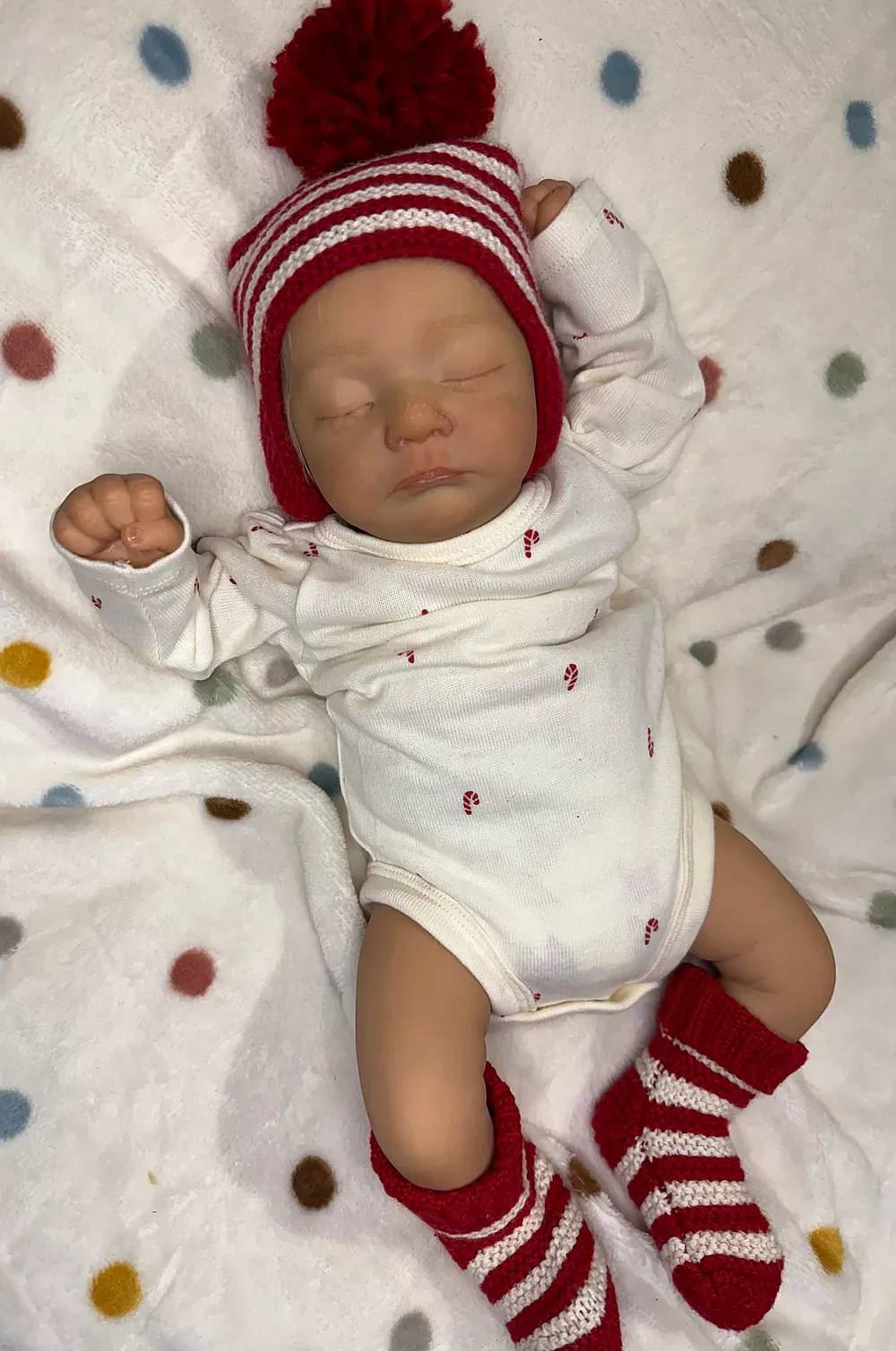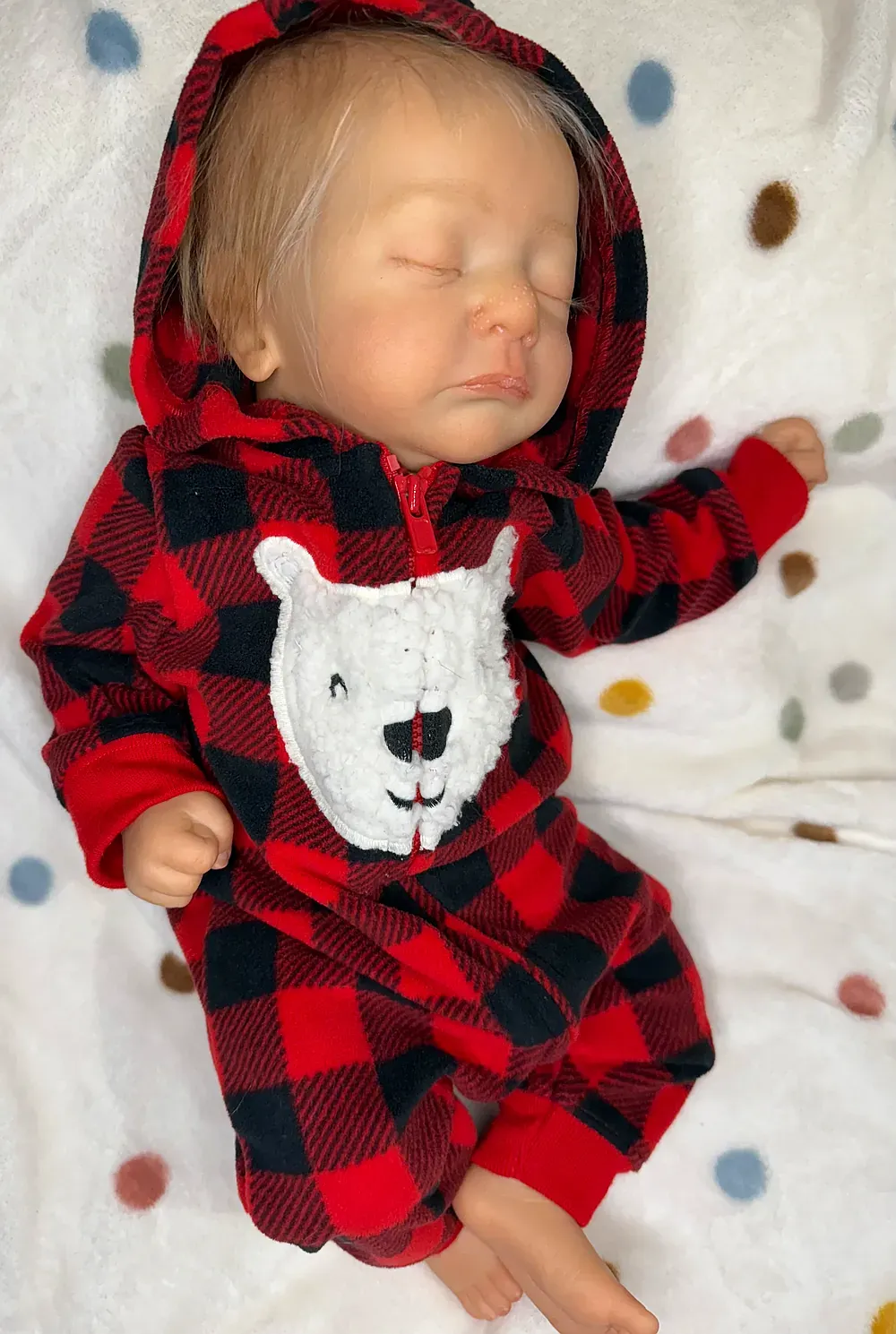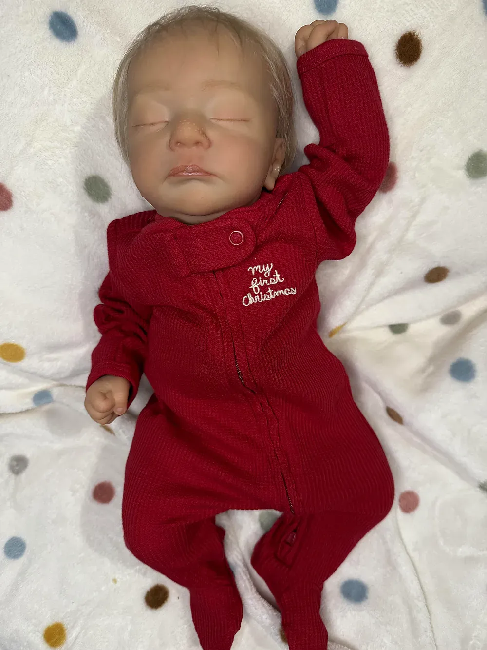 Meet Kai, an exquisitely crafted sleeping baby boy from the Elisa Marx sculpt. He features full silicone limbs on a soft cloth body, expertly painted with GHSP to achieve a warm, deep skin tone. Kai has meticulously micro-rooted black mohair and sealed, natural-looking eyelids. Weighted with fine glass beads and soft polyfil to 5 lbs 2 oz.