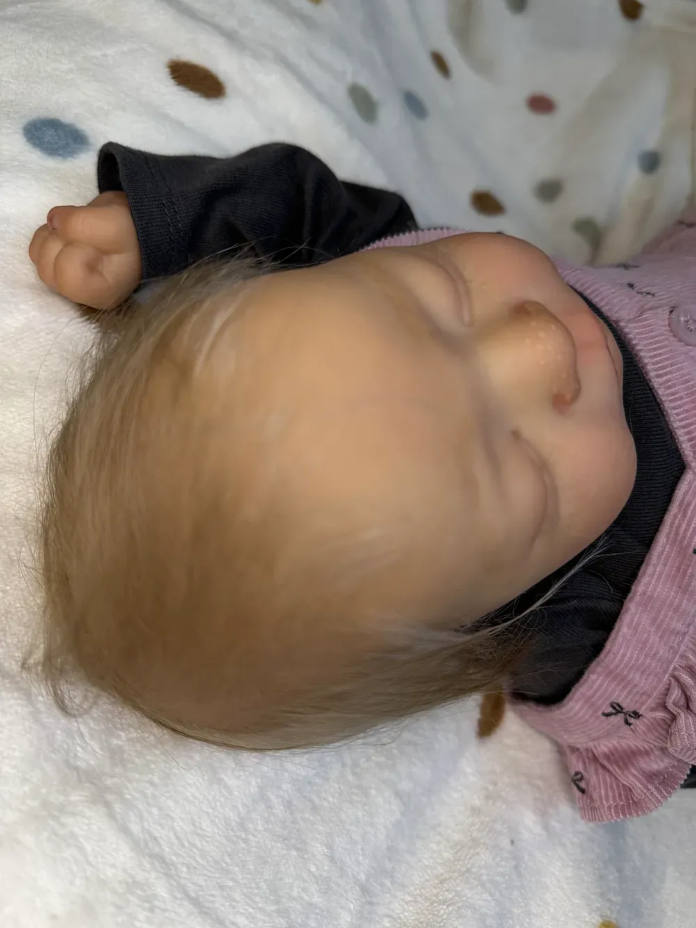 Sleeping Boy with Micro-Rooted Black Mohair