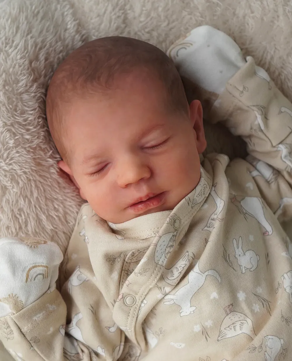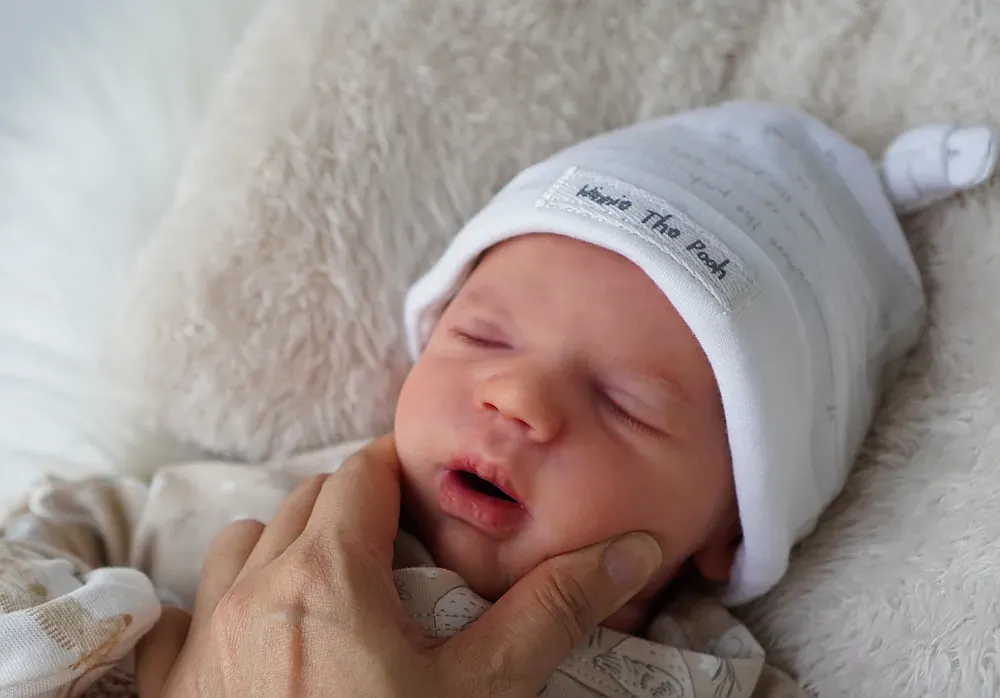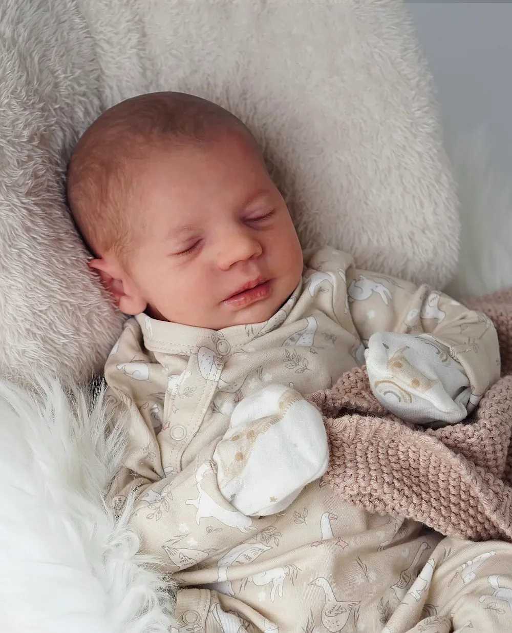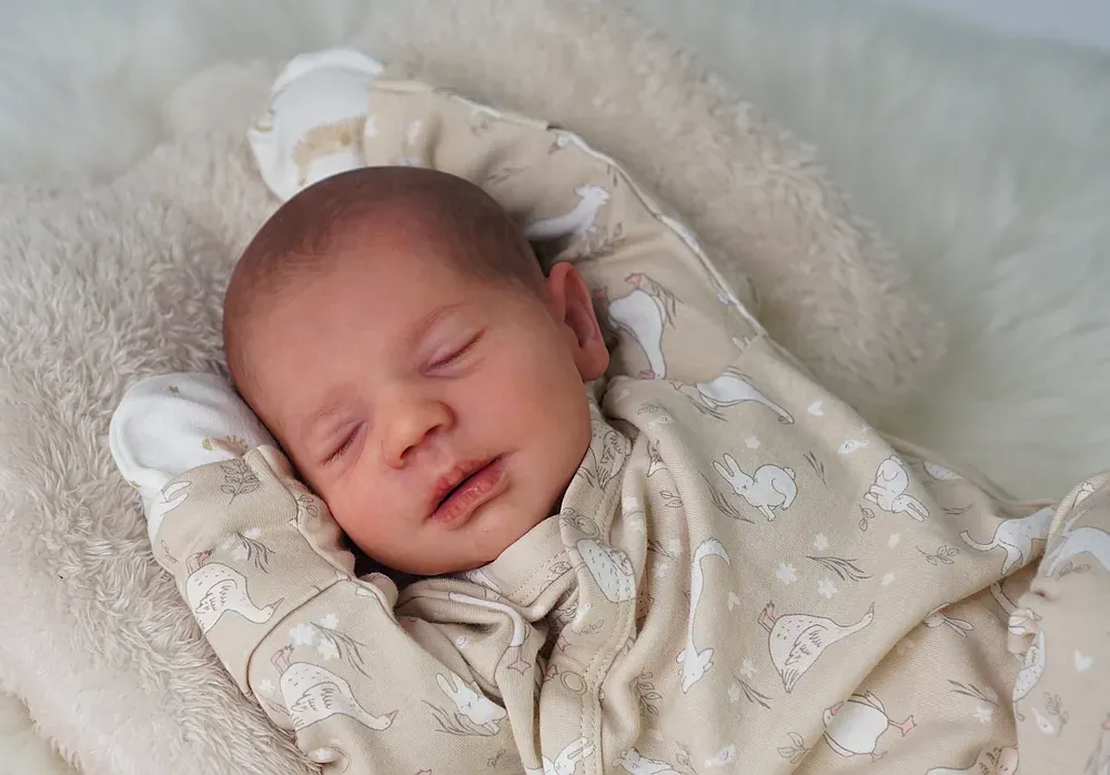 Leo is a tiny 10-inch micro-preemie, sculpted by Bountiful Baby’s smallest kit. His full silicone limbs and head are attached to a weighted cloth body. Leo is bald, showcasing his perfect tiny head shape and detailed capillaries. Weighted to a delicate 2 pounds with glass beads. A true tiny treasure for specialized collections.