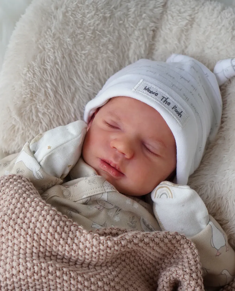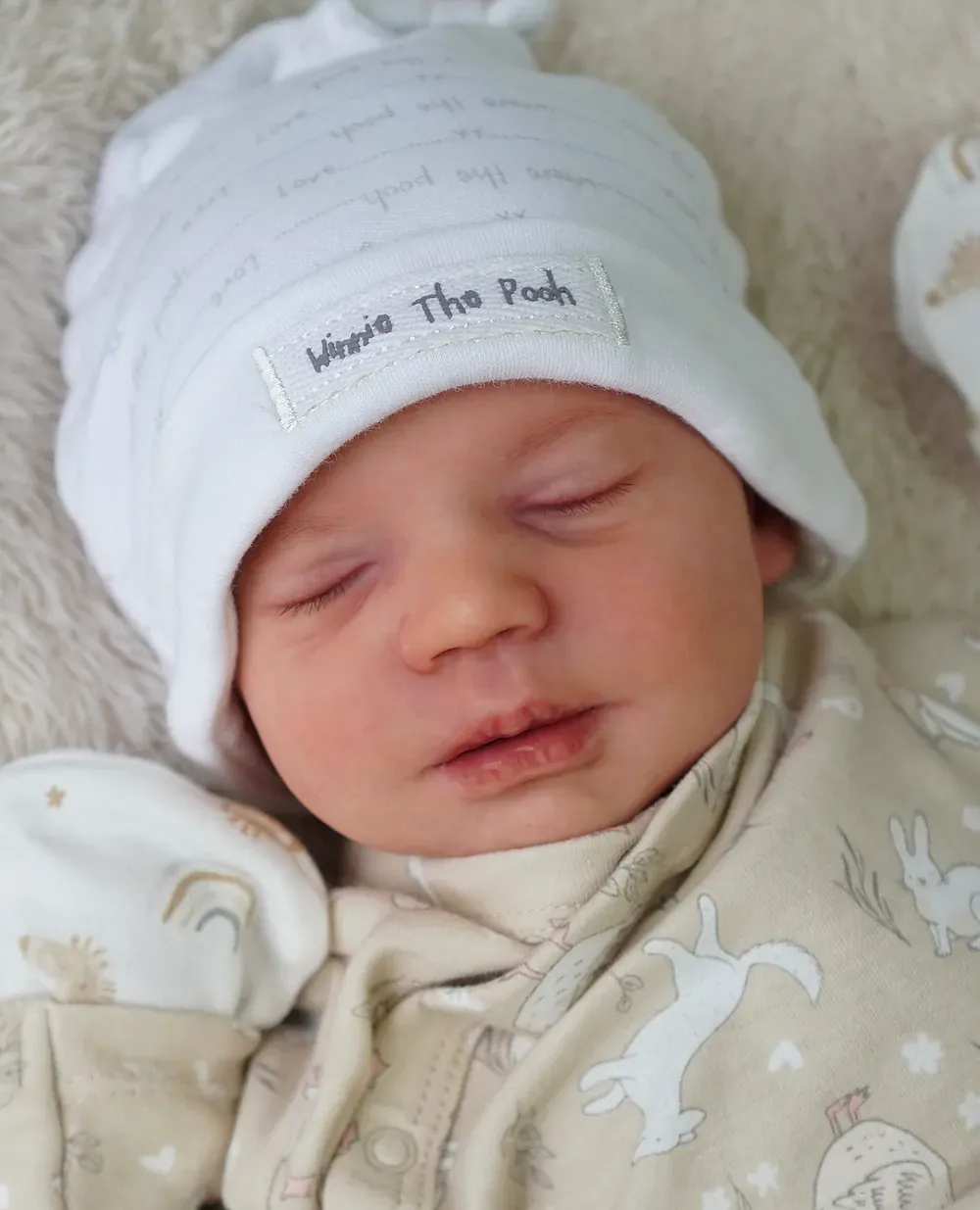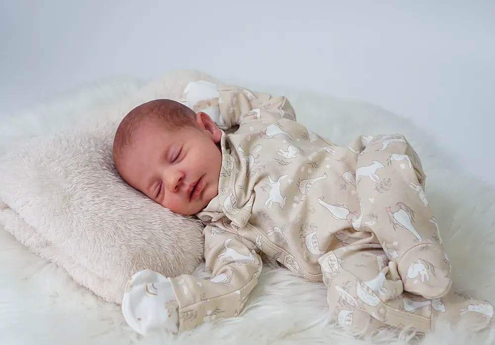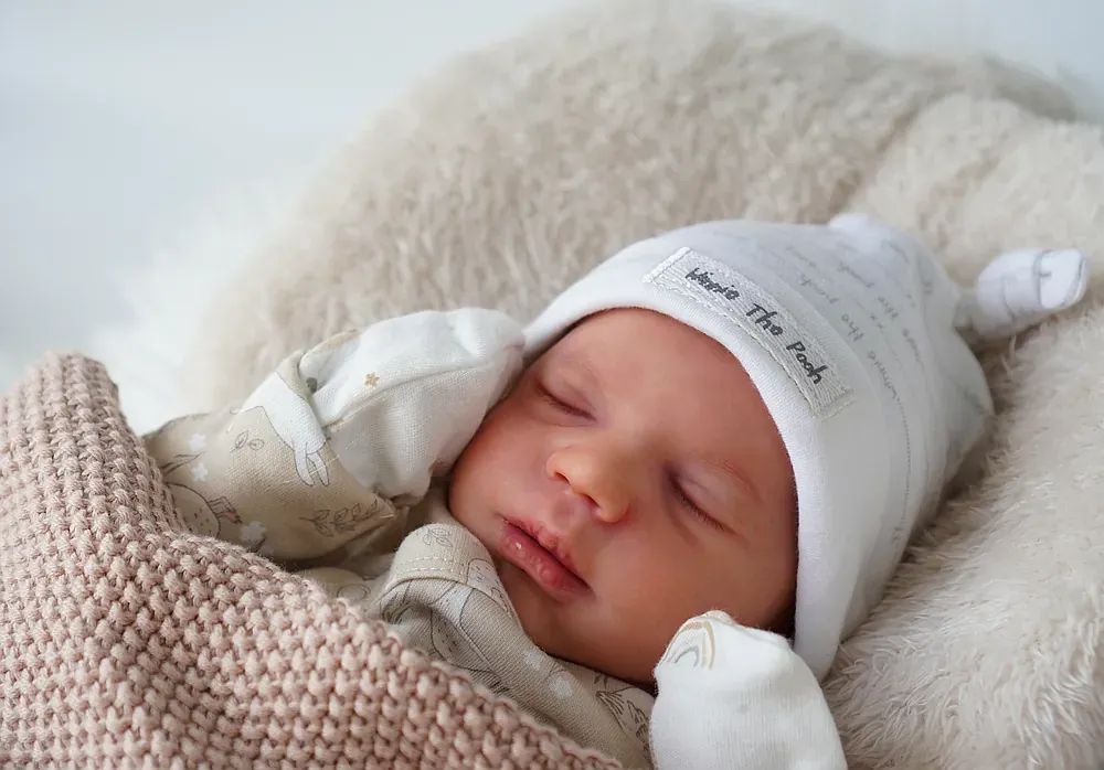 Leo is a tiny 10-inch micro-preemie, sculpted by Bountiful Baby’s smallest kit. His full silicone limbs and head are attached to a weighted cloth body. Leo is bald, showcasing his perfect tiny head shape and detailed capillaries. Weighted to a delicate 2 pounds with glass beads. A true tiny treasure for specialized collections.