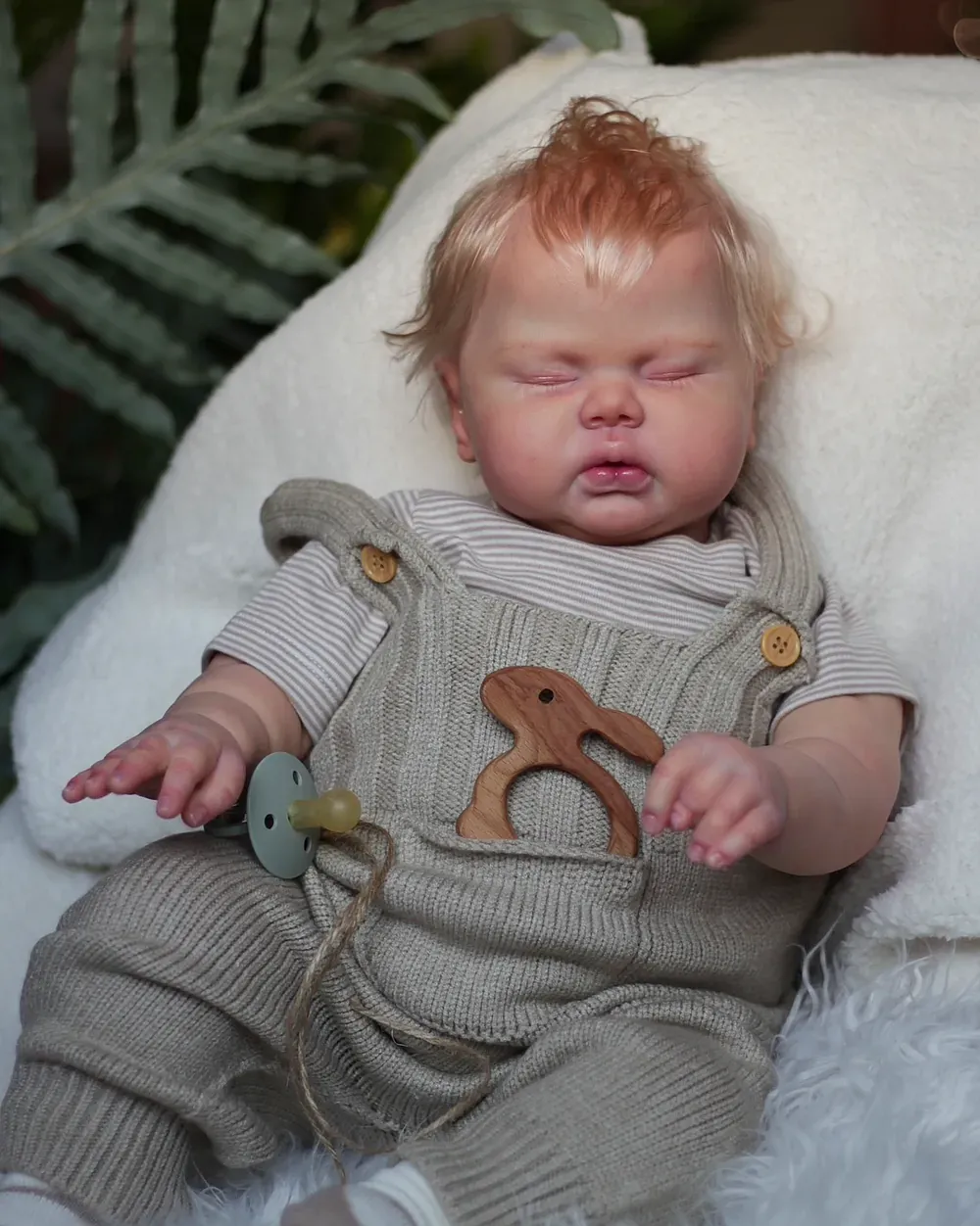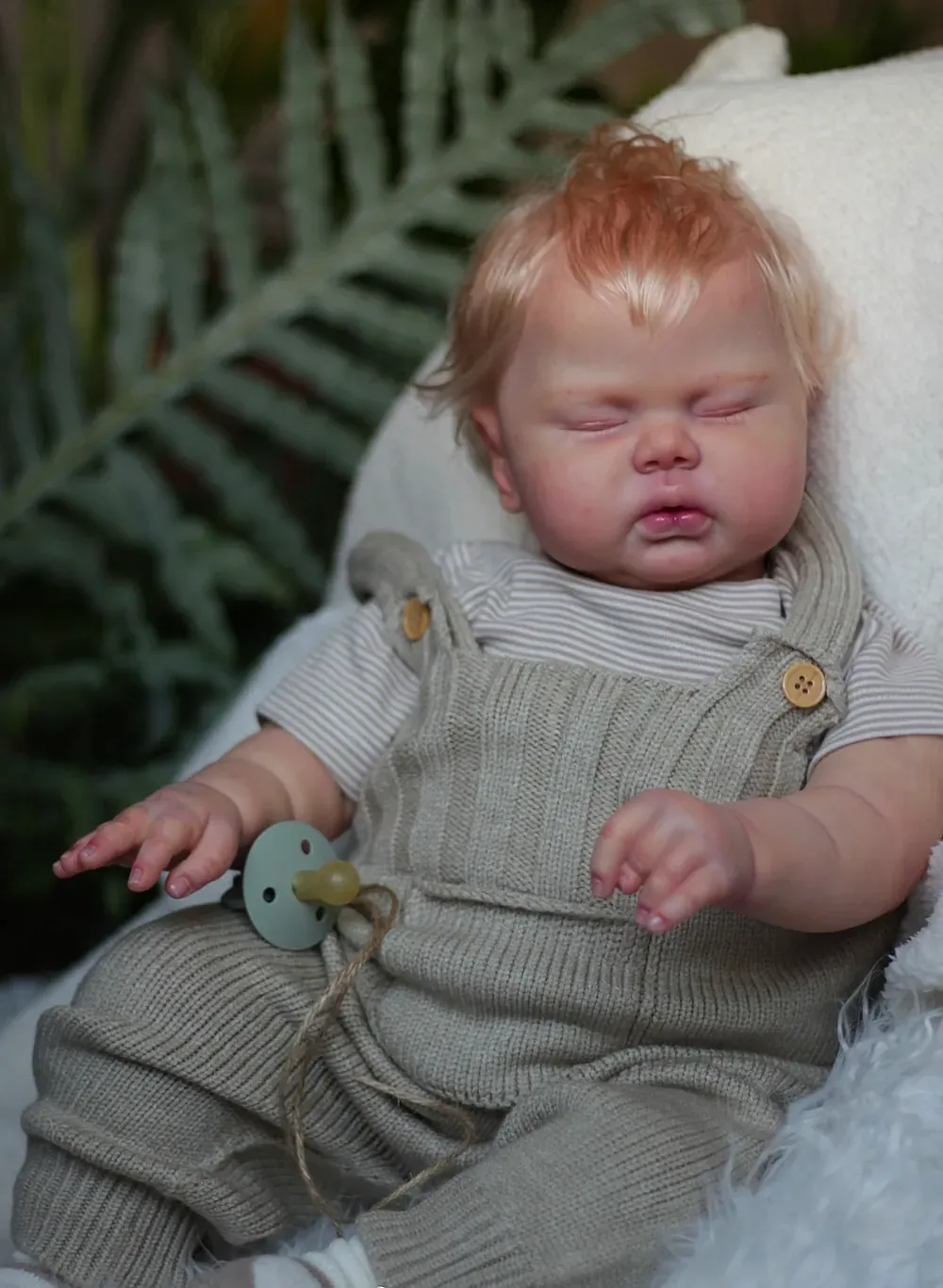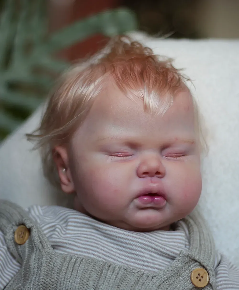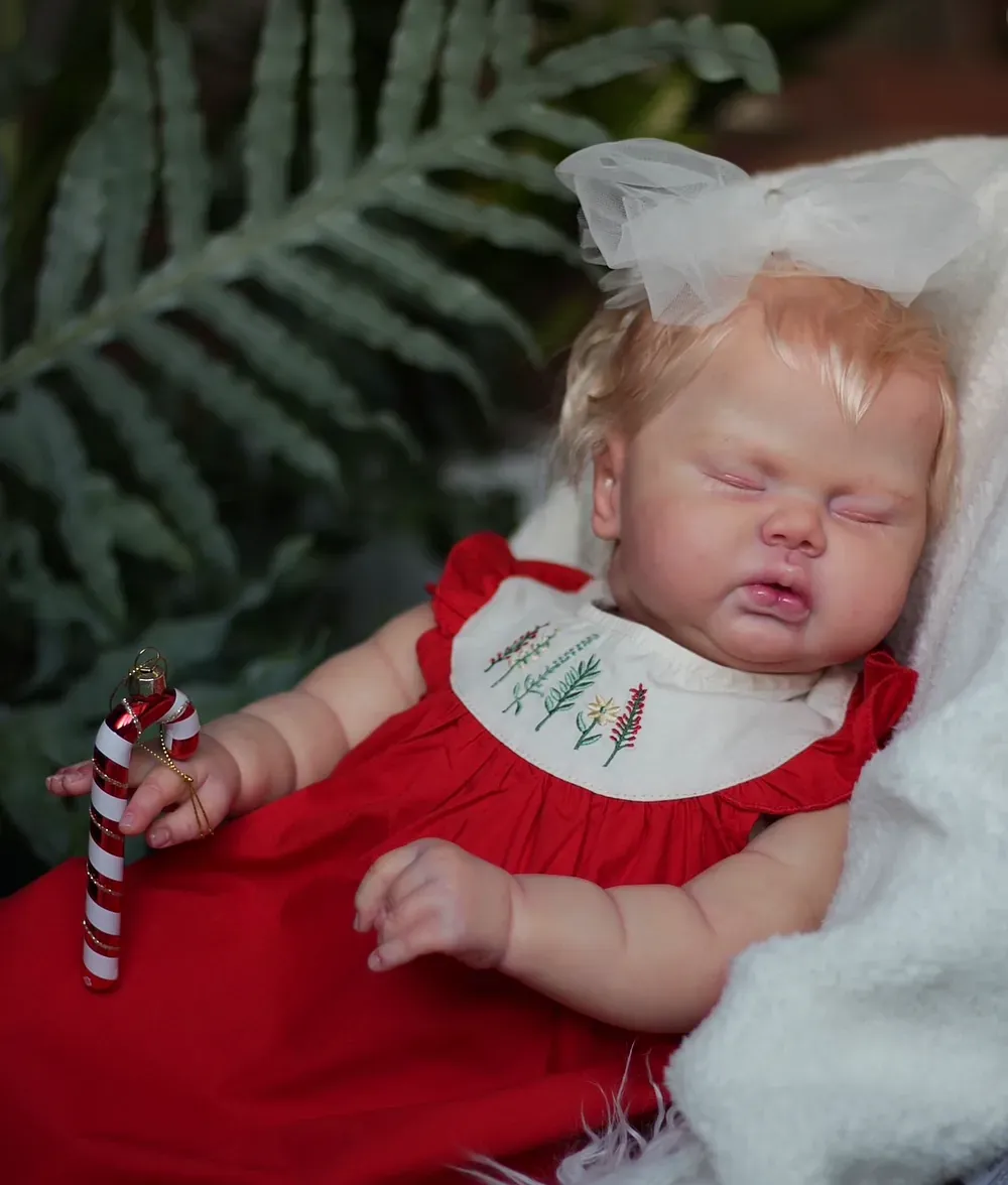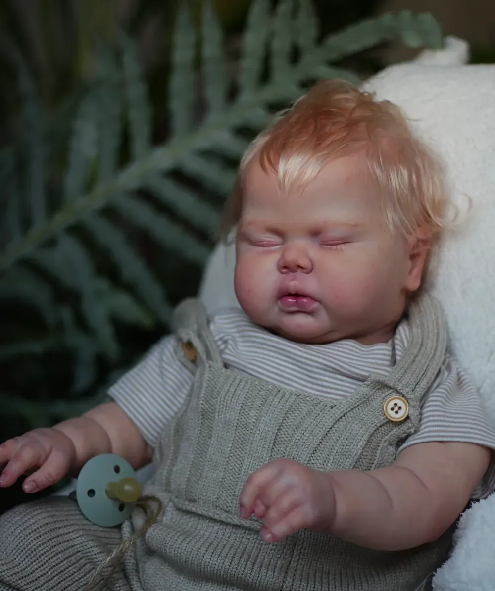 Stella is a sold-out limited edition preemie girl, 16 inches long, sculpted by Michelle Fagan. She is has blonde hair with rooted lashes, allowing her delicate head shape and paintwork to stand out. Full silicone arms and legs on a silicone body. She features a fair, mottled skin tone.