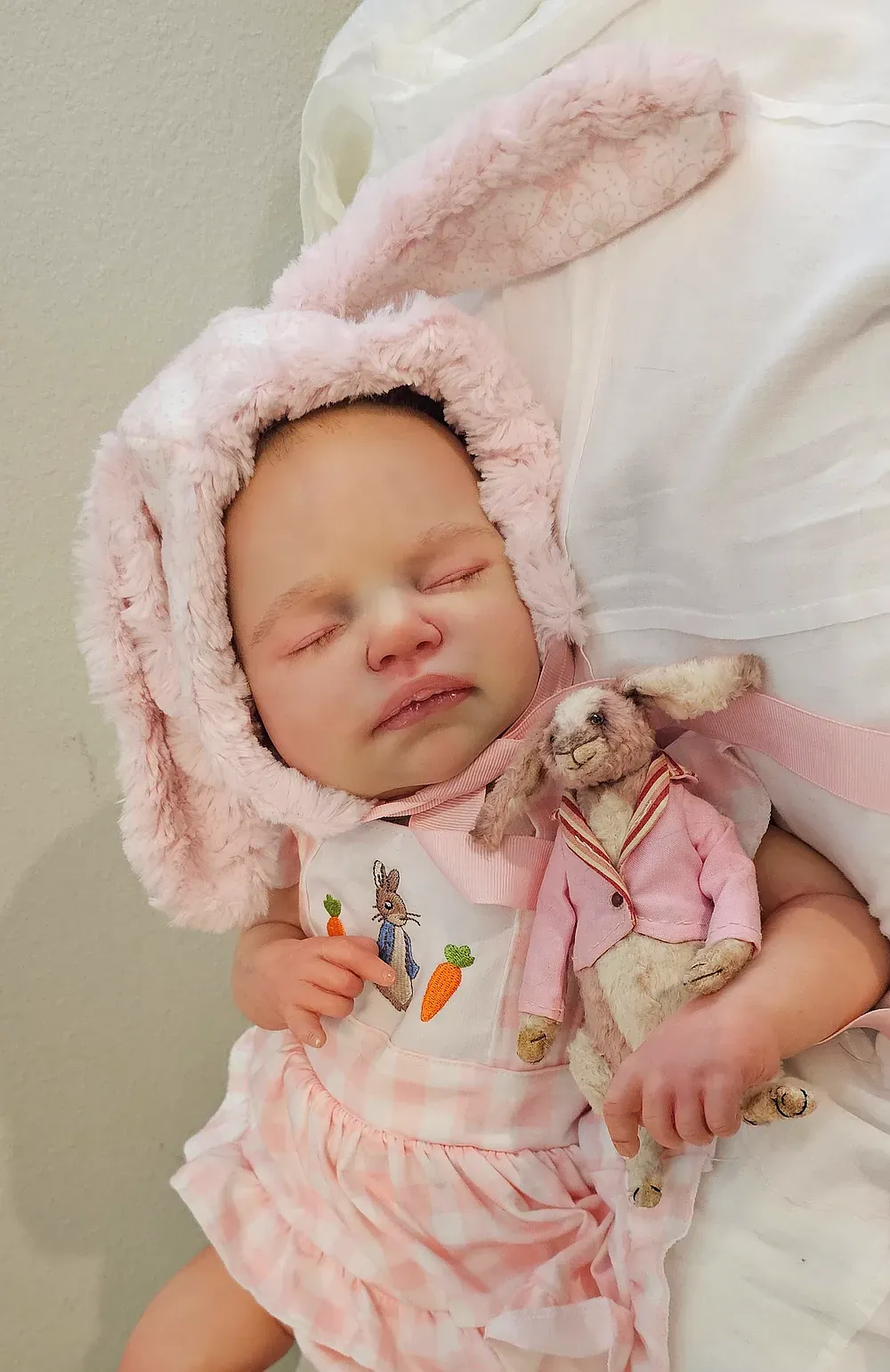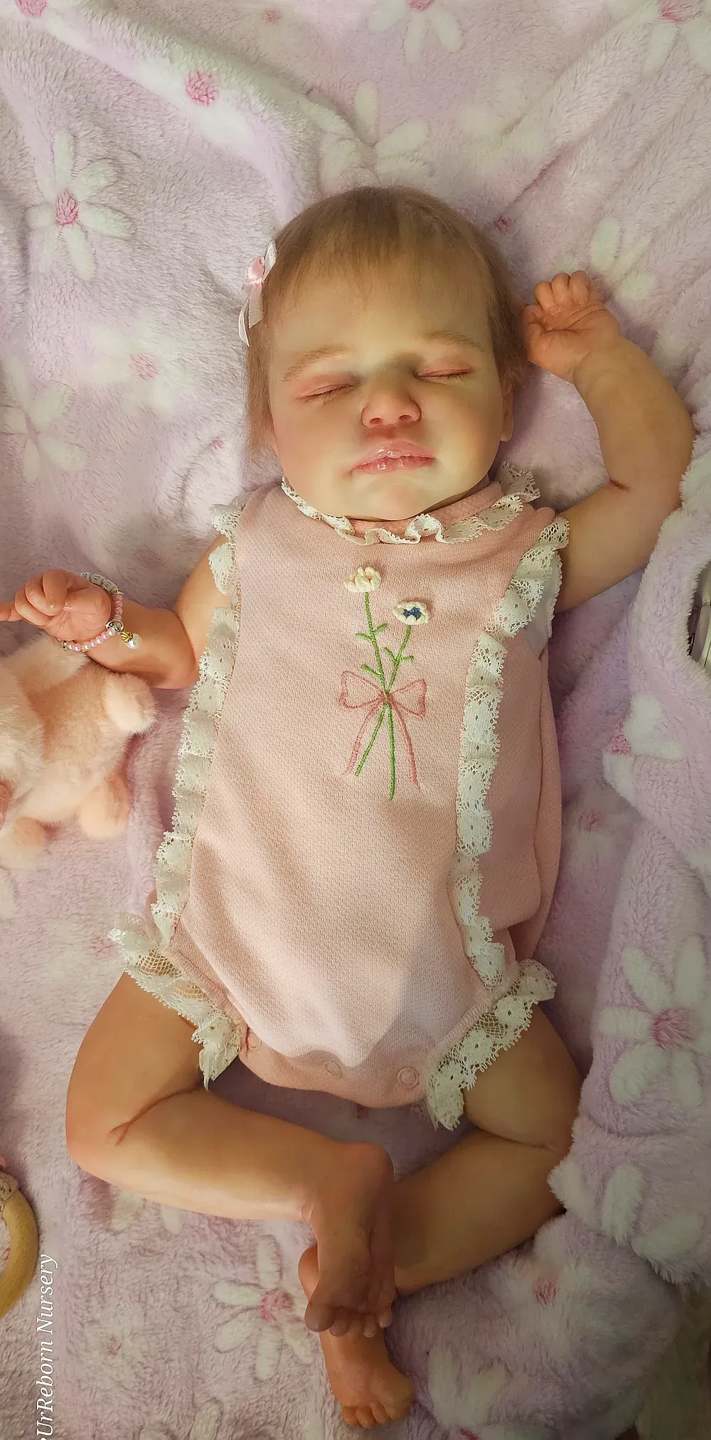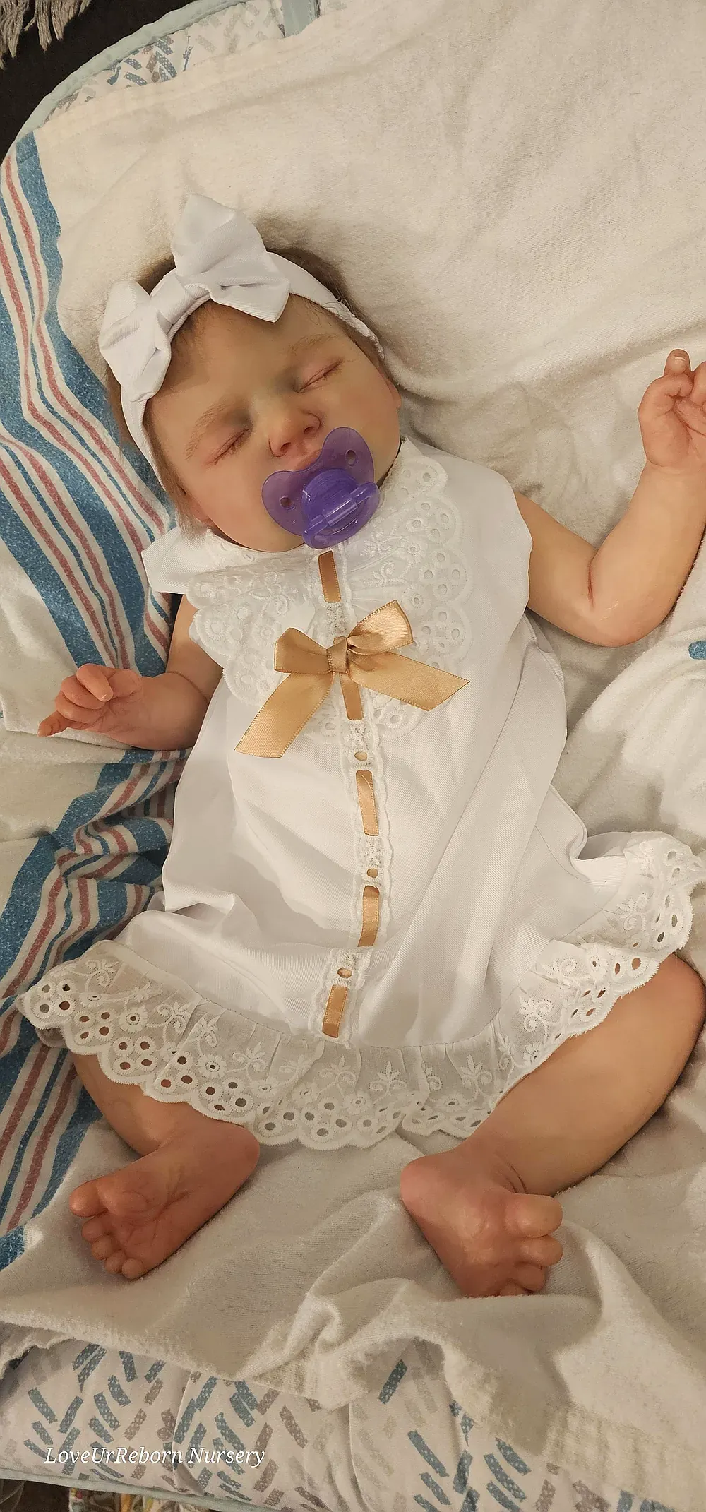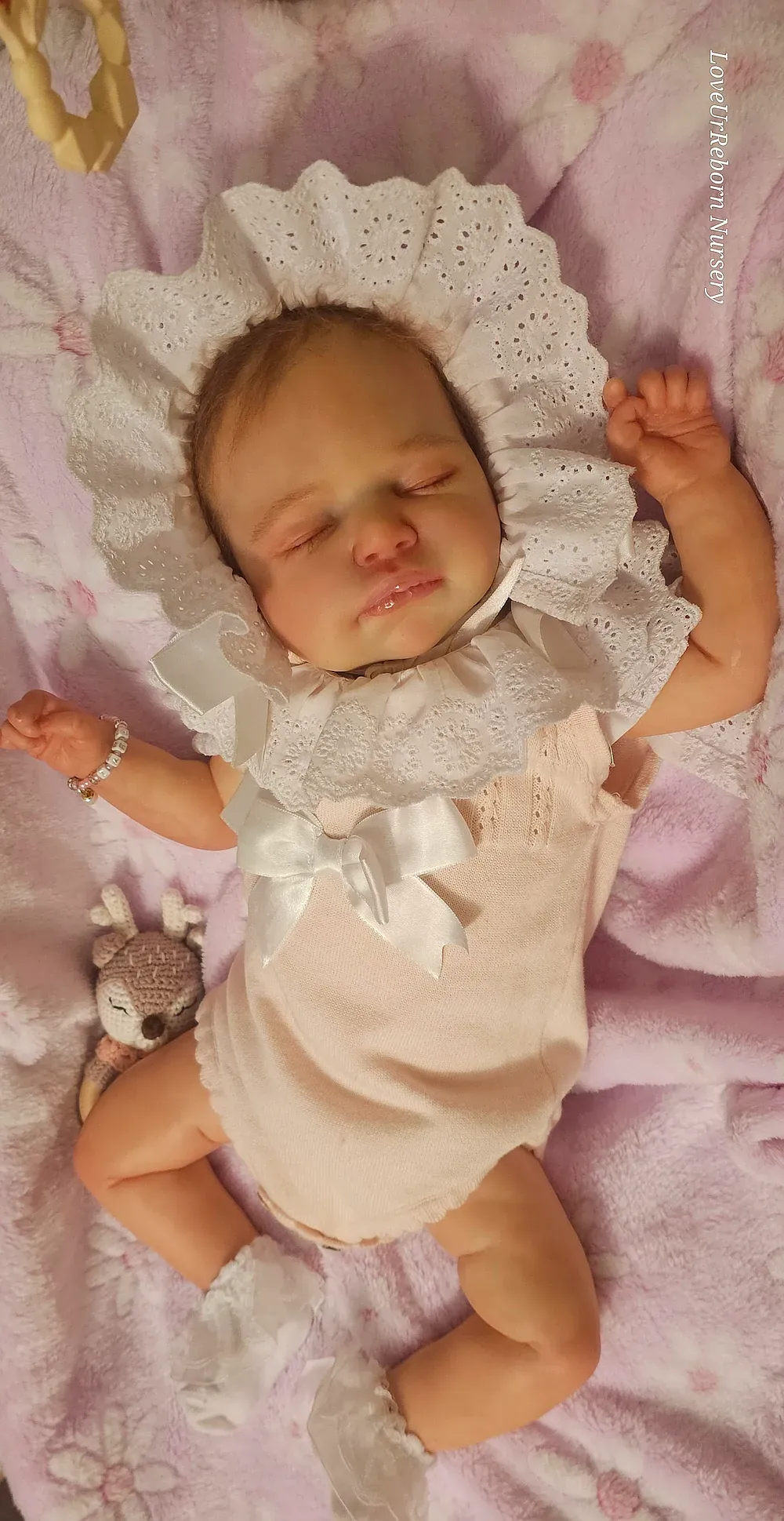 Zara is an ultra-realistic platinum full body silicone newborn girl. Poured in a super-soft blend for maximum movement and realism. She has a perfectly painted 3D-textured eyebrows and rooted lashes. She is bathable and comes with her own care kit.